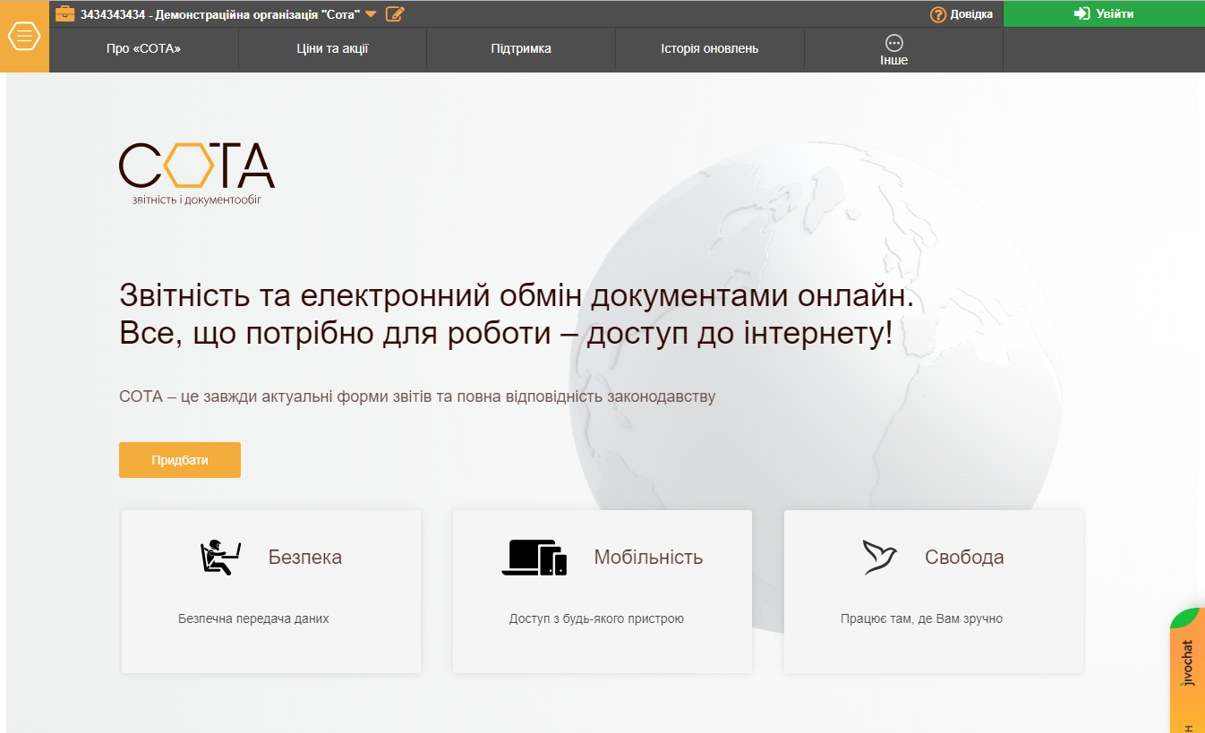 Якщо ви також мають намір якомога швидше перейти на онлайнову звітність, рекомендуємо звернути увагу на спеціалізований веб сервіс СОТА, що надає розширені можливості для тих, хто відповідає за ведення бухгалтерської звітності.